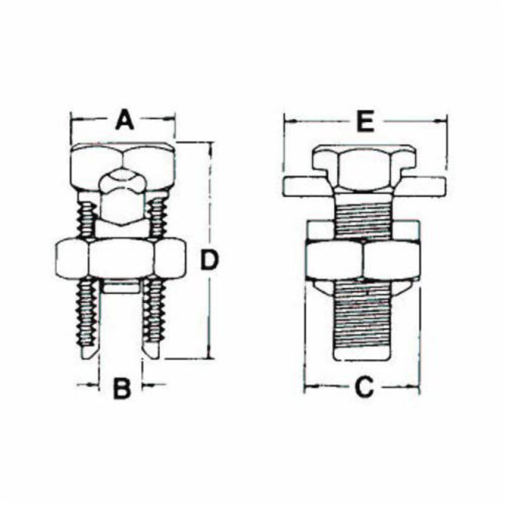 Blackburn® APS350 Type APS Dual Rated Split Bolt Connector, 4 AWG to 350 kcmil Stranded Aluminum/Copper Conductor, 1.4375 x 3.36 in, Aluminum