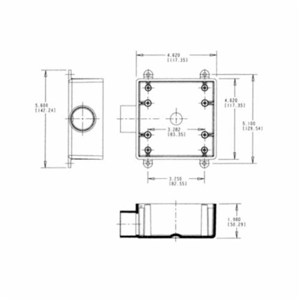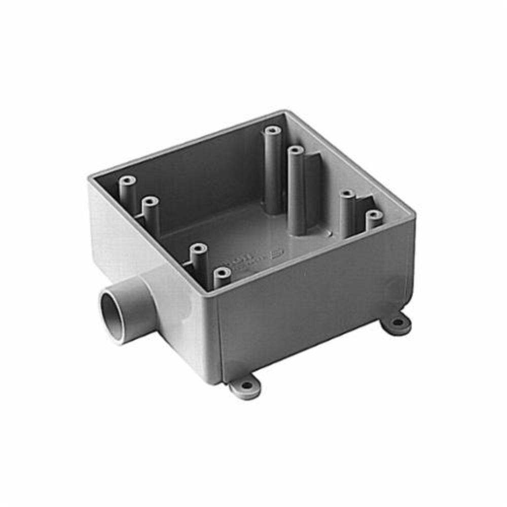 Carlon® E9802F F Series Type 2FSE Rigid Shallow Style Device Box, PVC, 32 cu-in, 2 Gangs, 1 Outlet, 1 Knockout, 4.62 in L x 4.62 in W x 1.98 in D