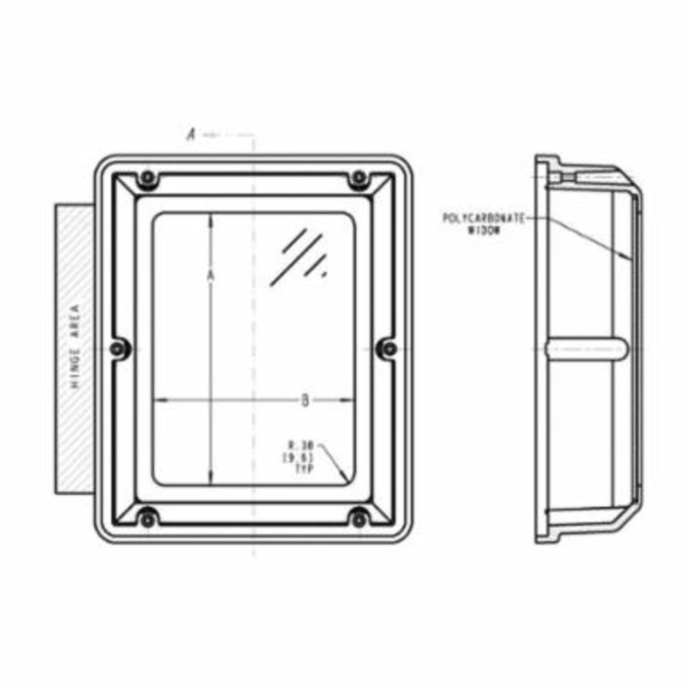 Carlon® Circuit Safe® J1085W Factory Assembled JIC Enclosure With Hinged Window Cover, 8 in W x 5 in D x 10 in H, NEMA 1/3/3S/3X/3SX/4/4X/12/13, Polycarbonate