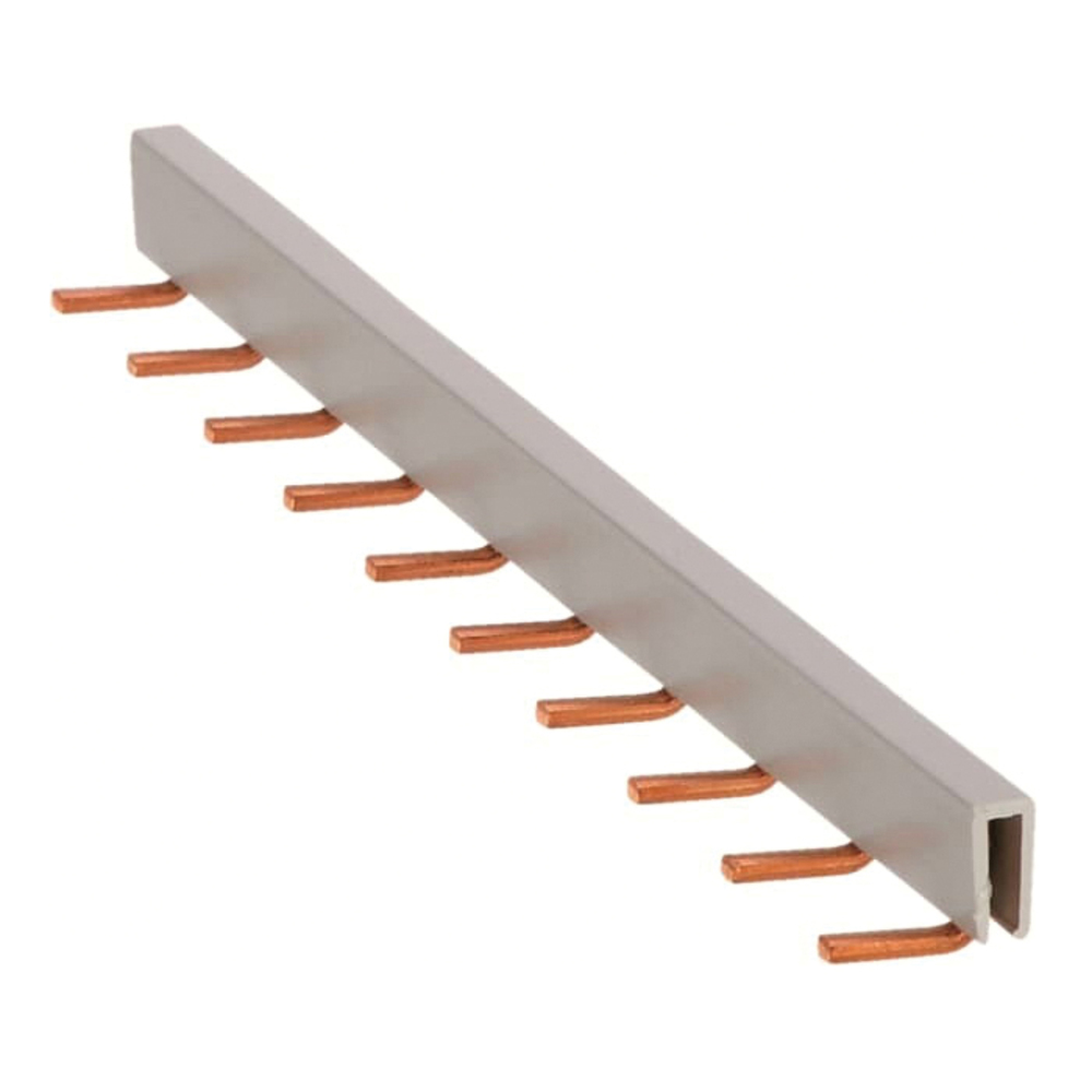 ABB 1SVR405658R5000 Jumper Bar, 400 VAC, 25 A, -40 to 55 deg C Ambient, 10-Pin, 1-Phase, Pin Type Rail, For Use With CR-P PCB Interface Relay Socket with Screw Connection, Light Gray
