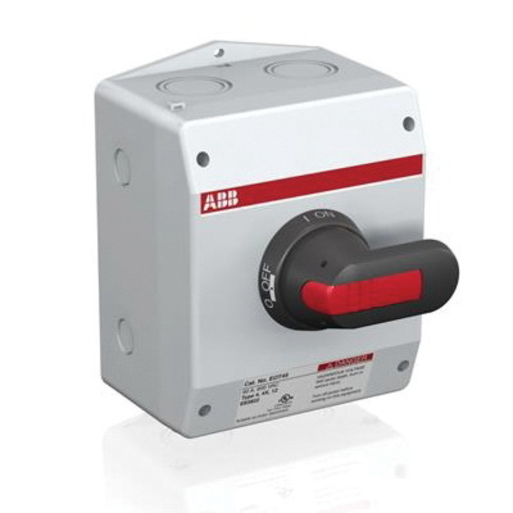 ABB EOT45U3P4-1P Heavy Duty Non-Fusible Enclosed Disconnect Switch, 600 VAC, 60 A, 30 hp at 480/600 VAC, 1NO Contact, 3 Poles