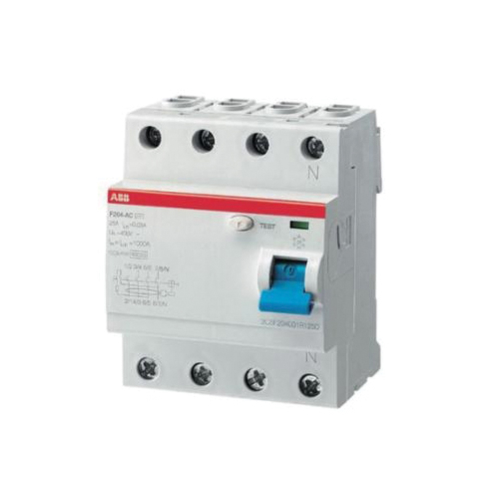 ABB F204A-25/0.3 F200 Type A Low Voltage Residual Current Circuit Breaker, 230/400 VAC, 25 A, 1 kA, 4 Poles