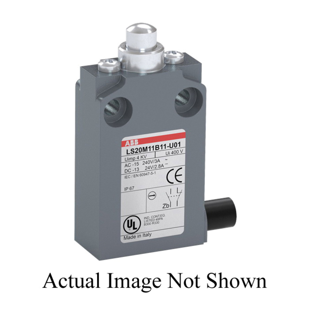 ABB LS20M11D11-U01 LS Series Miniature Prewired Limit Switch, 24/120/240 VAC, 24/125/240 VDC, 0.1/0.22/1.1/1.5/3/5 A, Metal Plain Plunger Actuator, 1NC-1NO Contact