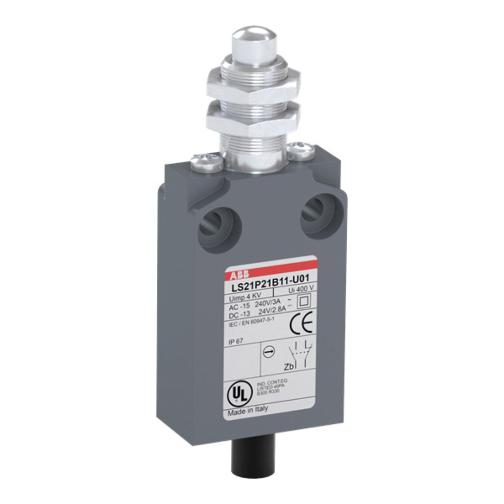 ABB LS21P21B11-U01 LS Series Miniature Prewired Limit Switch, 24/120/240 VAC, 24/125/240 VDC, 0.1/0.22/1.1/1.5/3/5 A, Plunger Actuator, 1NC-1NO Contact