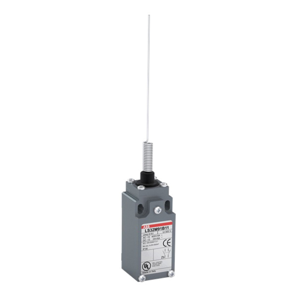 ABB LS35M91B11 LS Series Limit Switch, 24/130/230/240/400 VAC, 24/110/250 VDC, 0.27/0.6/1.8/2.8/3/3.1/5.5/10 A, Flexible Spring Rod Actuator, 1NC-1NO Contact