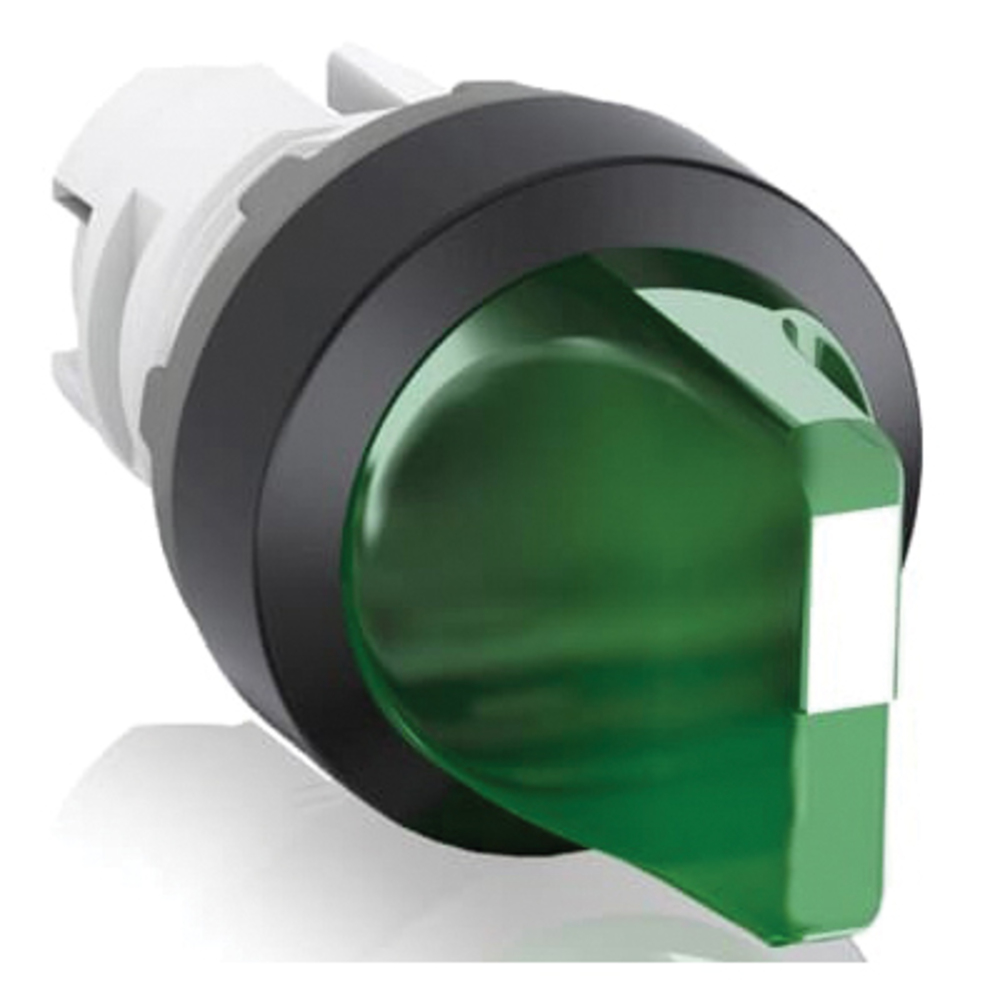 ABB M3SS2-11G Modular Illuminated Selector Switch Operator, 0.05 mm L x 0.048 mm W x 0.03 mm H, Spring Return/Knob/Short Handle Operator, 3 Positions, Green