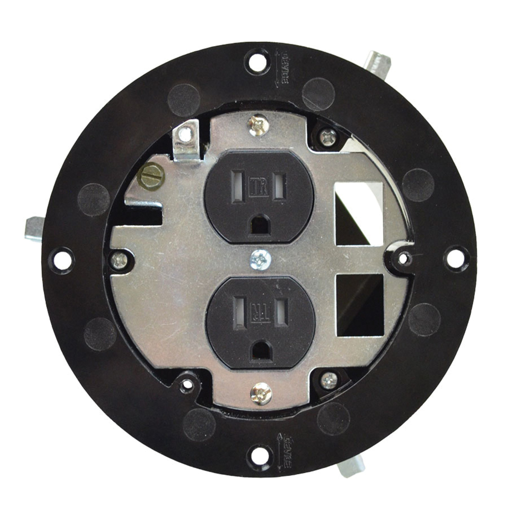 Allied Moulded FB-4RI Floor Box Rough-In Kit With 15 A 125 V Duplex/LV Receptacle, Polycarbonate, 19.5 cu-in Capacity, 2 Outlets