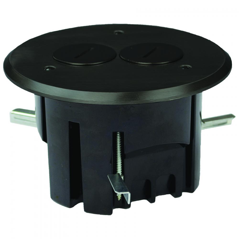 Allied Moulded FB-3DB Duplex Floor Box Assembly With Dark Bronze Plated Brass Cover, Polycarbonate, 24.5 cu-in, 2 Outlets, 2 Knockouts, 3.94 in W x 3 in D