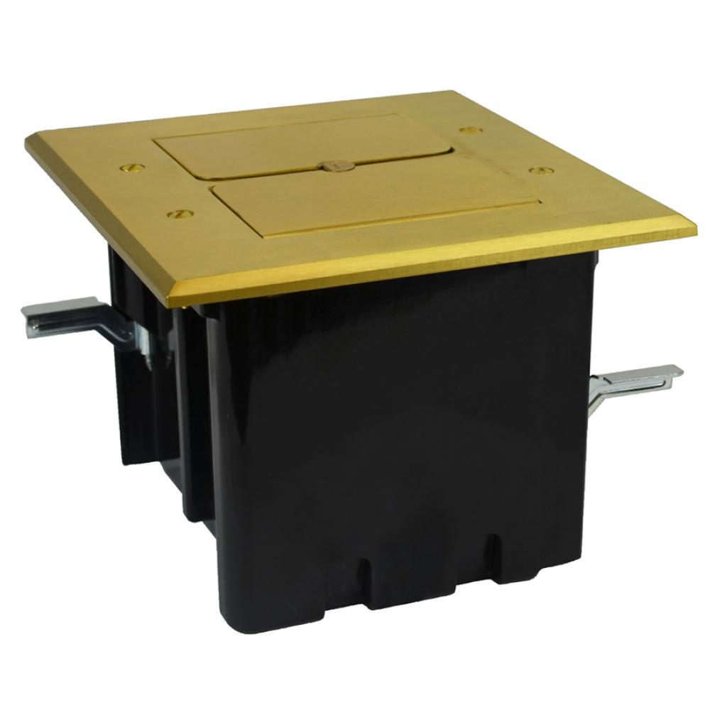 Allied Moulded FB-5 Decorative Low Voltage Floor Box Assembly With Brass Flip-Lid Cover, Polycarbonate, 44.5 cu-in, 2 Gangs, 4 Knockouts, 4.34 in H x 4.5 in W x 4.06 in D