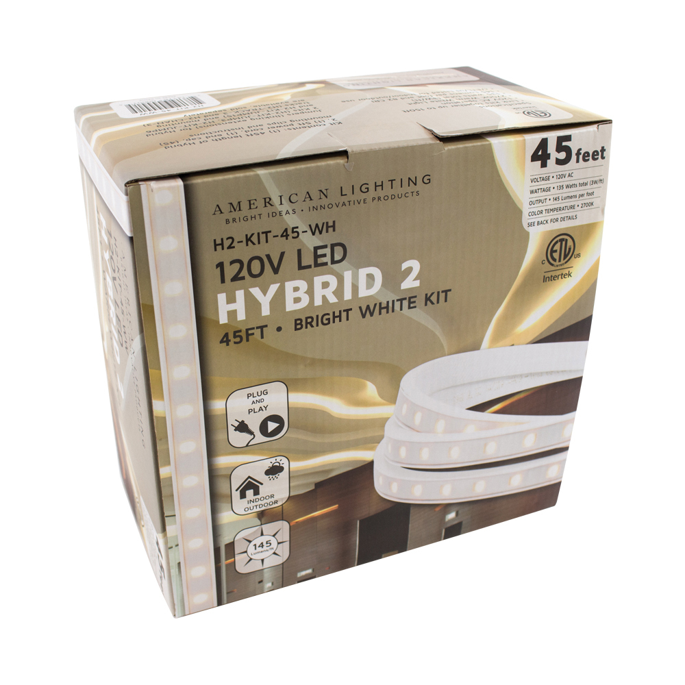 American Lighting H2-KIT-45-WH Dimmable Economical Flexible Linkable Low Profile Non-Cuttable Linear Reel Kit, LED Lamp, 120 VAC, White Housing