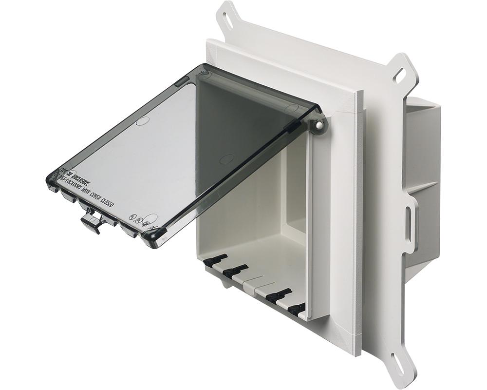 Arlington InBox™ DBLVS2C 1-Piece Low Profile Exterior Keypad Enclosure With Weatherproof While-In-Use Clear Cover, Plastic, 2 Gangs, 7.159 in H x 6.888 in W x 5.131 in D