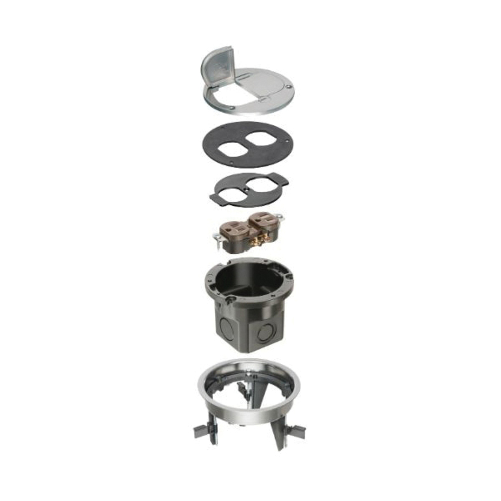 Arlington DROPIN™ FLB4364NL Low Profile Floor Box Kit, Nickel/Plastic, 1 Gang