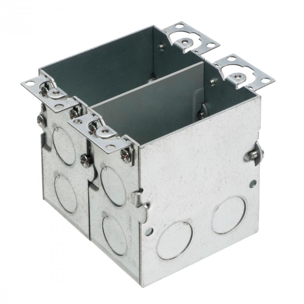 Arlington FLB5549 Combination Floor Outlet Box With Installed Low Voltage Divider, Steel, 36 cu-in, 2 Gangs, 14 Knockouts, 3.5 in H x 3.749 in W x 3 in D