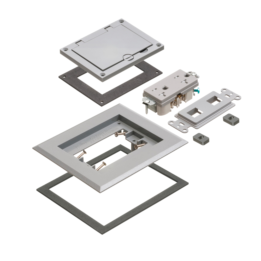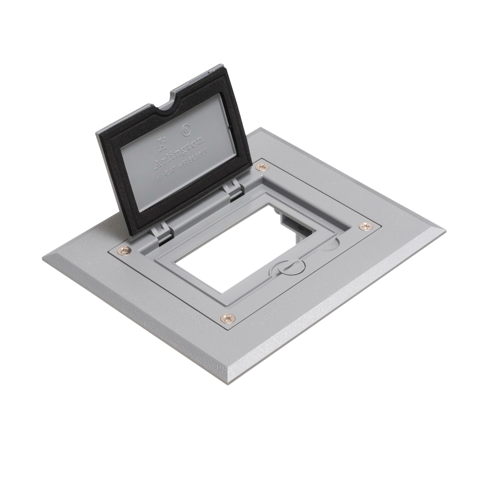 Arlington FLBC8510GY Modular Non-Metallic Floor Box Cover and Frame Kit, 4.26 in L x 3.26 in W, Flip Lid Cover, Plastic