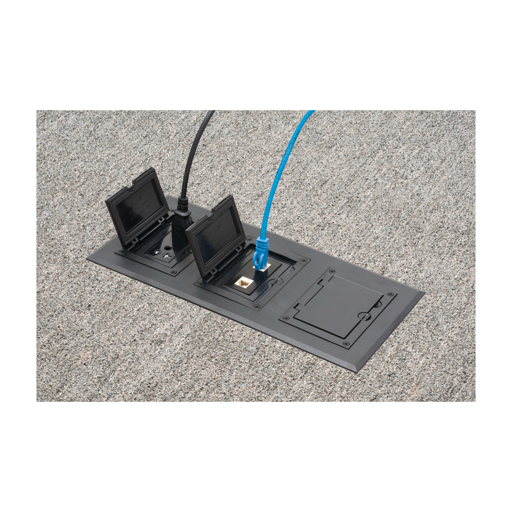 Arlington FLBC8530BL Modular Non-Metallic Floor Box Cover and Frame Kit, 6.094 in L x 13.546 in W, Flip Lid Cover, Plastic