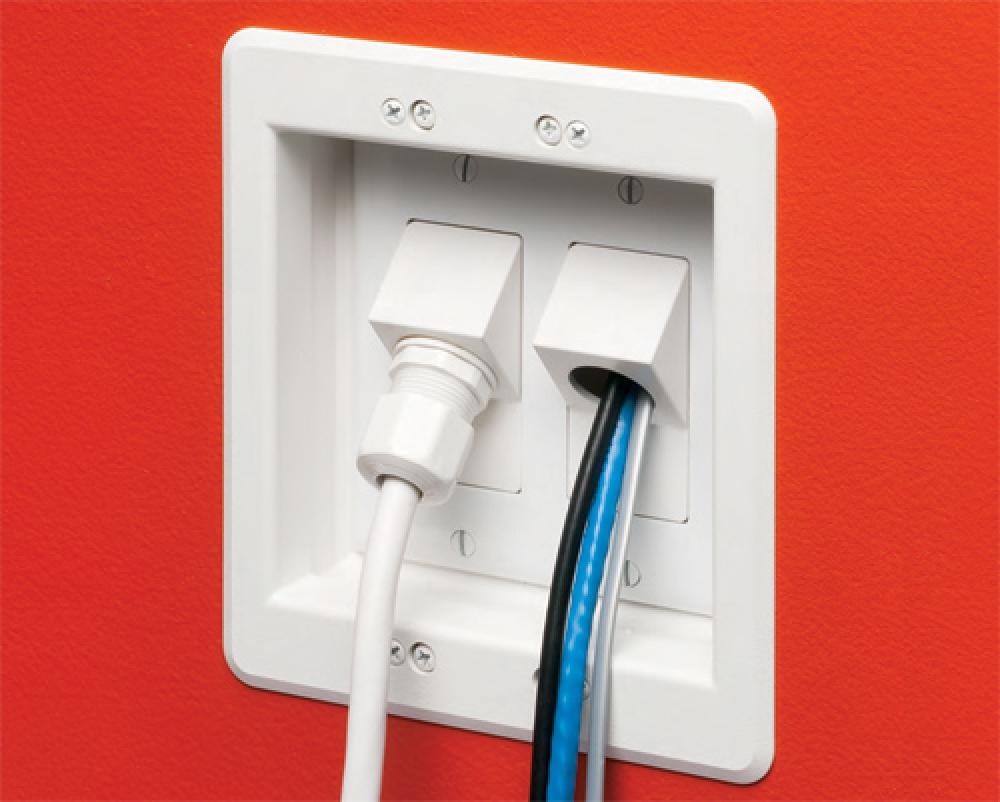 For smooth 45 deg angle for power and low voltage cable connectors installed with a decorator style plate
