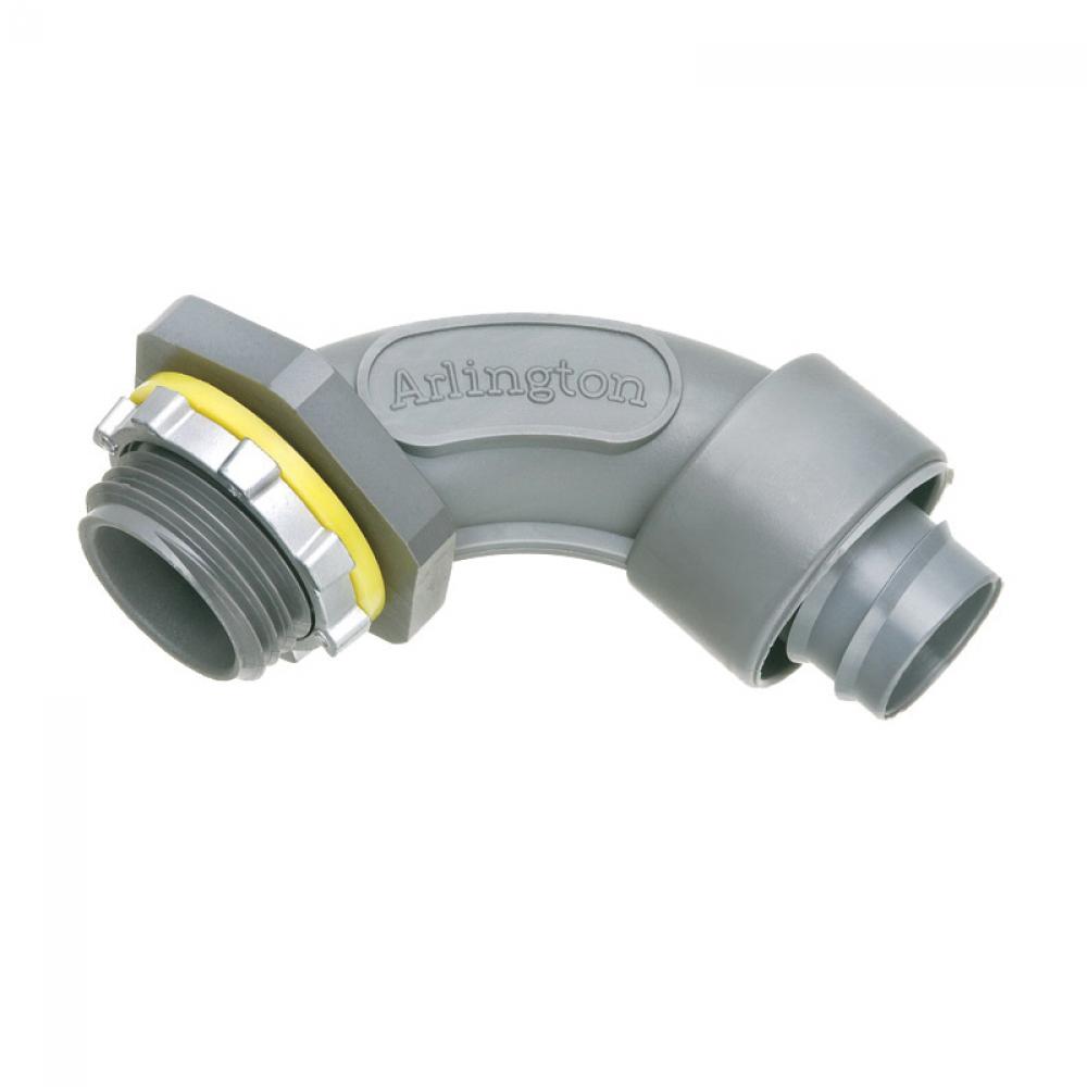 Arlington NMSC9050 Form B Straight Liquidtight Conduit Connector, 1/2 in Trade, 90 deg, Plastic