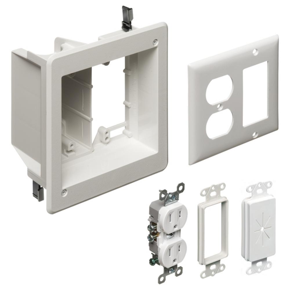 Arlington TV Box™ TVBR505K Power/Low Voltage Recessed Combination Box, Plastic, 18 cu-in, 2 Gangs, 6.942 in H x 6.254 in W x 3.75 in D