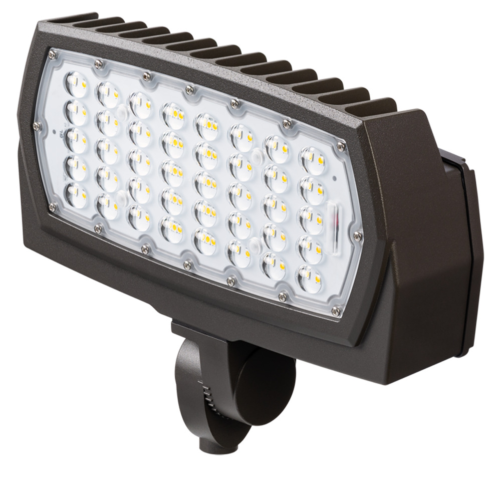 Atlas® FM8L45K Medium Wide Distribution Flood Light Fixture With Knuckle, LED Lamp, 68 W Fixture, 120/208/240/277 VAC, Bronze Housing