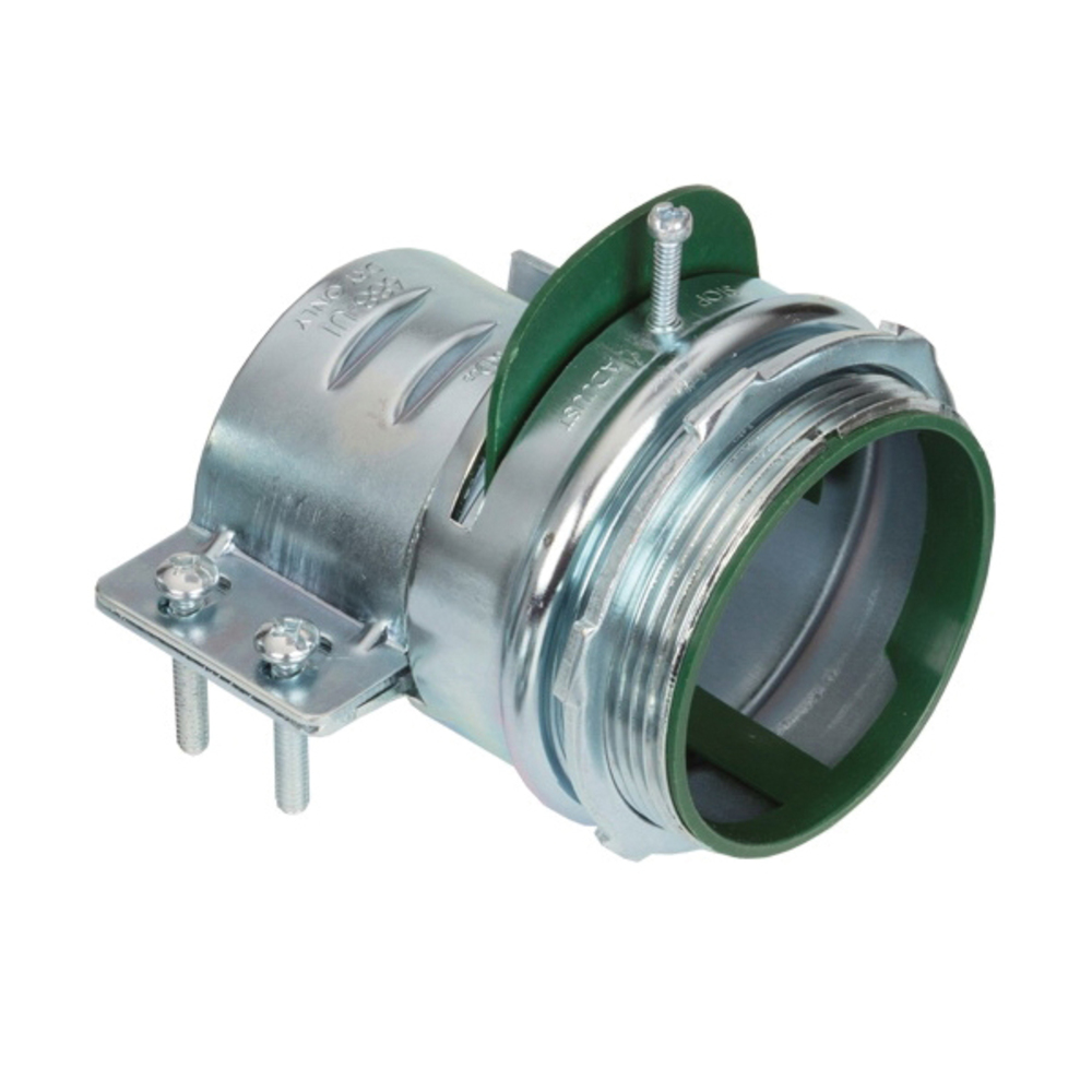 Bridgeport® MC-FLEXFIT™ 688-UI 680-UI Adjustable Endstop MC Cable Connector, 3 in Trade, 2.63 to 2.9 in Cable Openings, Steel, Zinc Plated