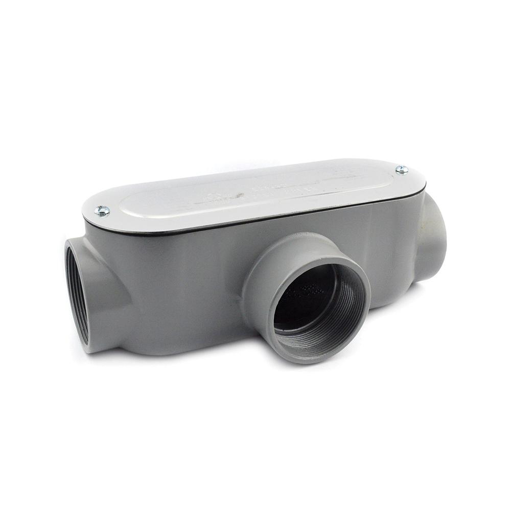 Bridgeport® T-49CG 5 Series Type T Conduit Body With Cover, Gasket, 3-1/2 in Hub, 85, 323 cu-in, Die Cast Aluminum, Enamel Painted