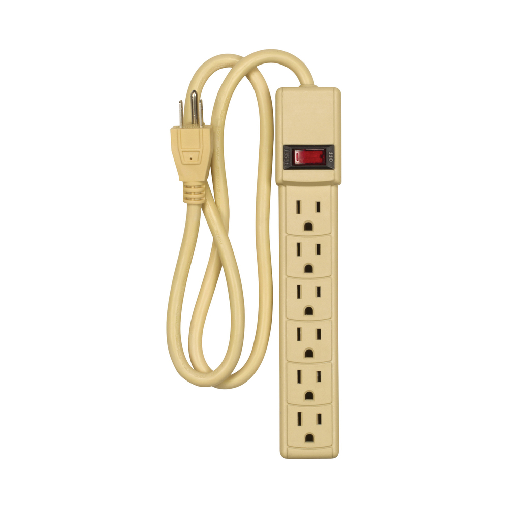 EATON 1136V 2-Pole Grounding Power Strip, 125 VAC, 15 A, 6 Outlets, 3 ft L Cord