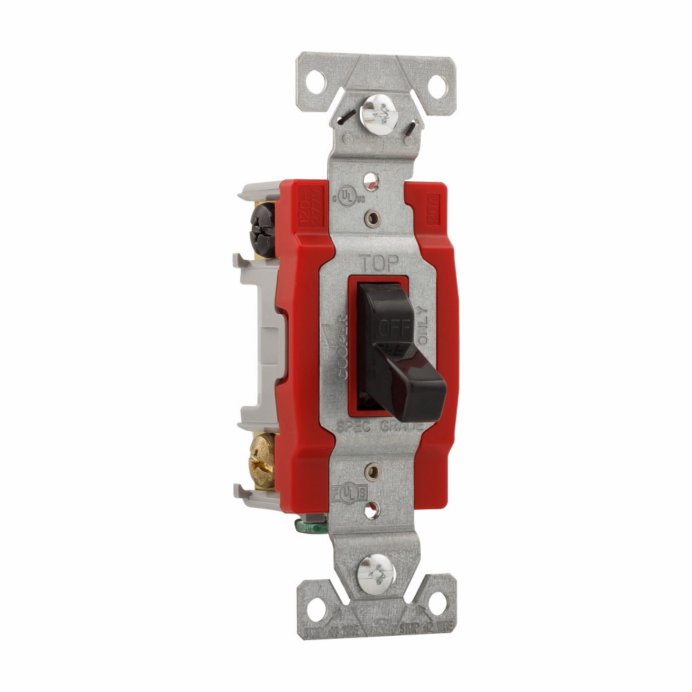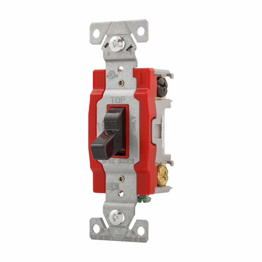 EATON Arrow Hart® 1222BK 1220 Automatic Grounding Construction Grade Toggle Switch, 120/277 V, 20 A, 1 hp Power Rating
