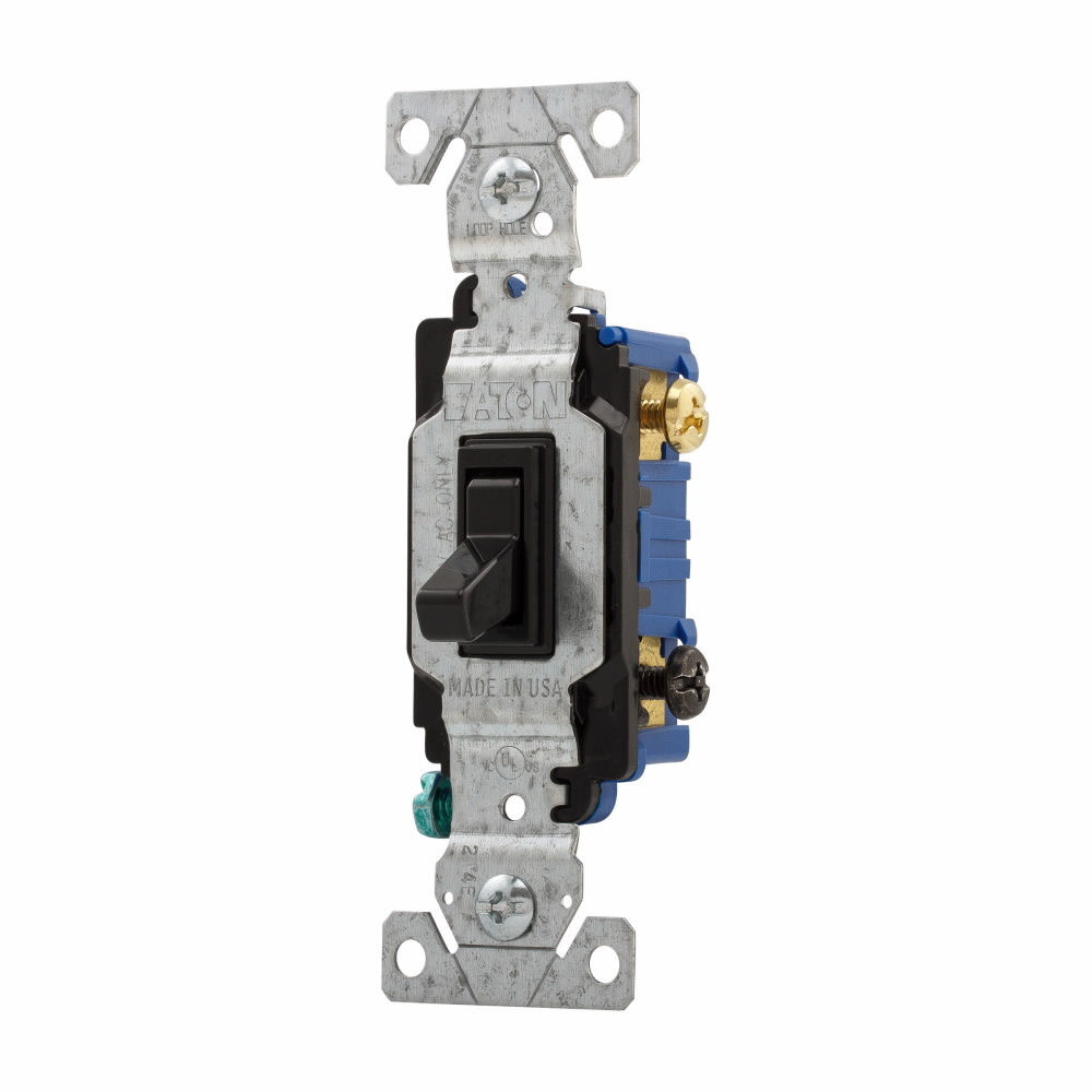 EATON Arrow Hart® 1303-7BK-SP-L 1303-7 3-Way Grounding Residential/Specification Grade Toggle Switch, 120 VAC, 15 A, 1/2 hp, 2 hp Power Rating