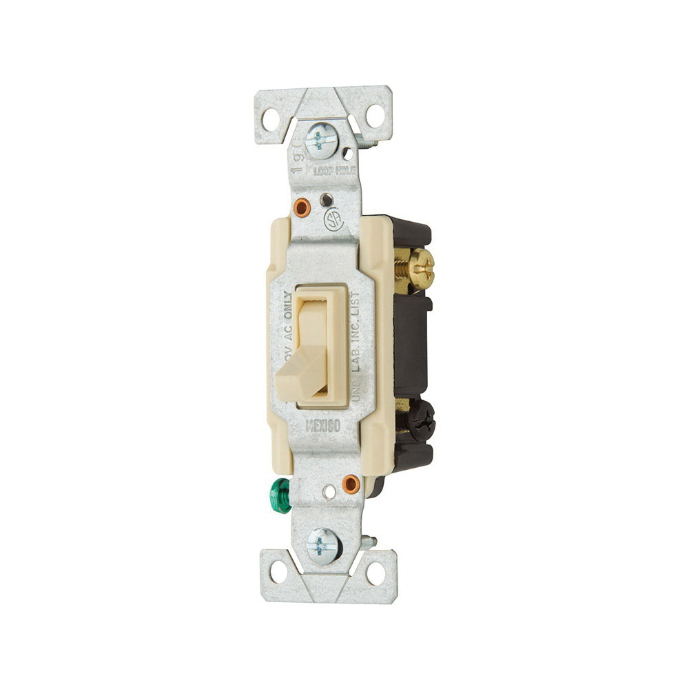 EATON Arrow Hart® 1303-7LTV-SP 1303-7 3-Way Grounding Residential/Specification Grade Toggle Lighted Switch, 120 VAC, 15 A, 1/2 hp, 2 hp Power Rating