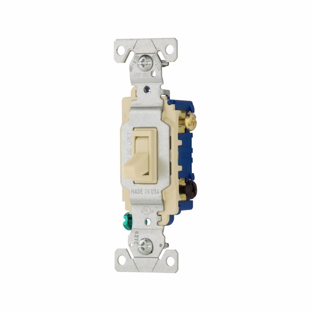 EATON Arrow Hart® 1303-7V-SP-L 1303-7 3-Way Grounding Residential/Specification Grade Toggle Switch, 120 VAC, 15 A, 1/2 hp, 2 hp Power Rating
