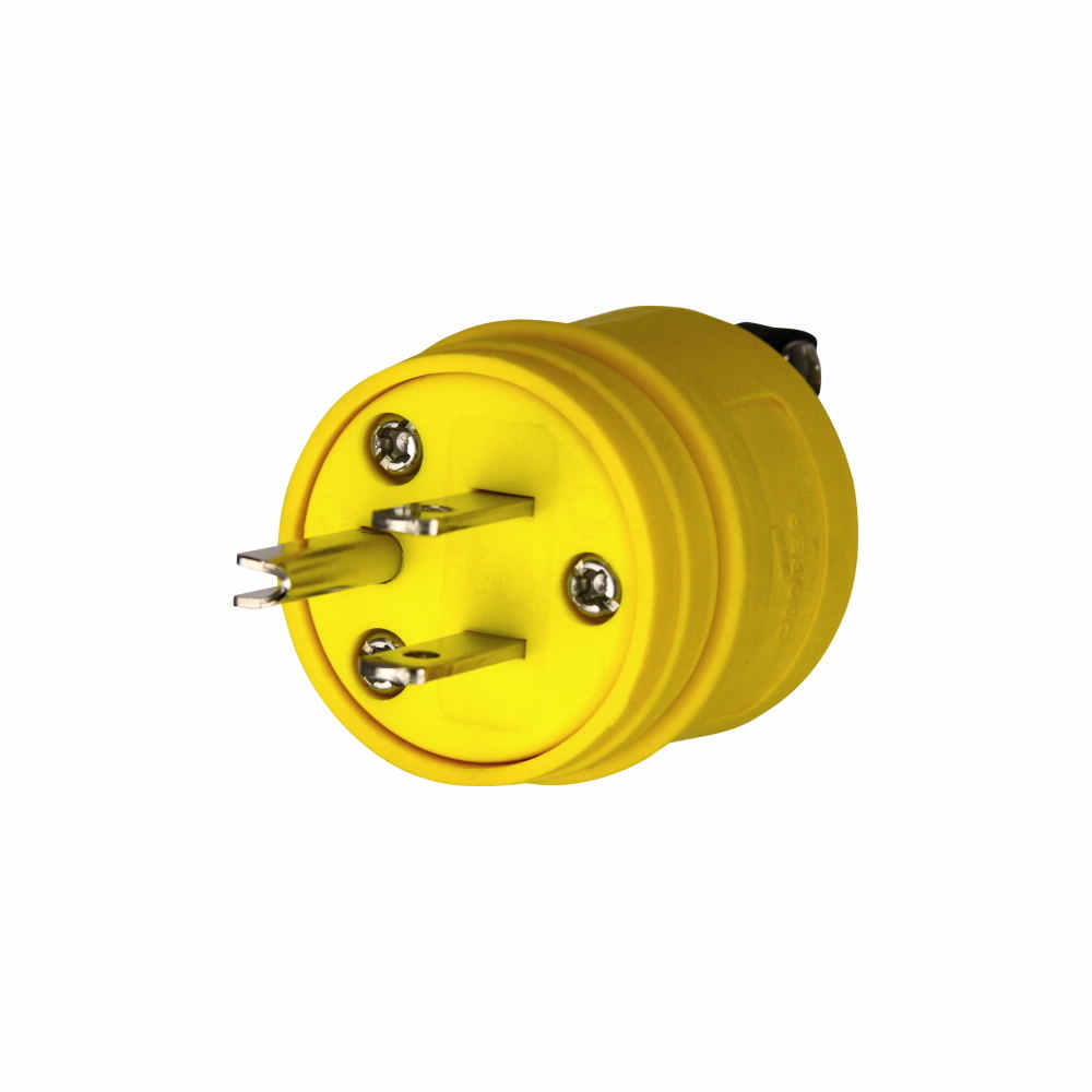 EATON Arrow Hart 1447 Grounding Insulated Severe Duty Straight Blade Plug, 125 VAC, 15 A, 2 Poles, 3 Wires, Black/Yellow