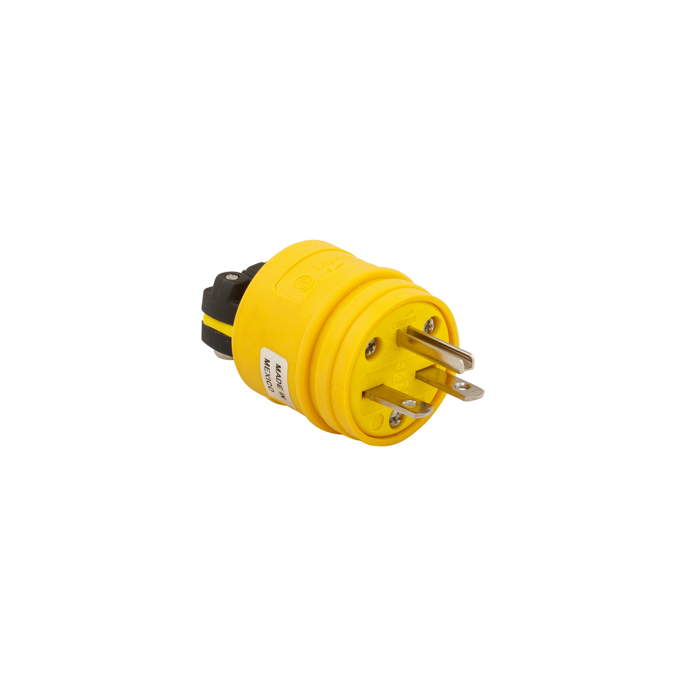 EATON Arrow Hart® 1449 Straight Blade Plug, 250 V, 15 A, 2 Poles, 3 Wires, Yellow