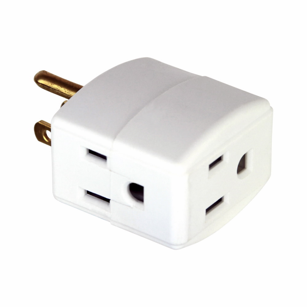 EATON 1482W-BOX 3-Outlet Grounding Single Receptacle Power Outlet Cube Tap, 125 VAC, 15 A