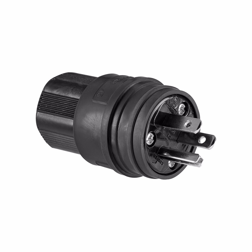 EATON Arrow Hart® 14W47BK Watertight Straight Blade Plug, 125 VAC, 15 A, 2 Poles, 3 Wires, Black