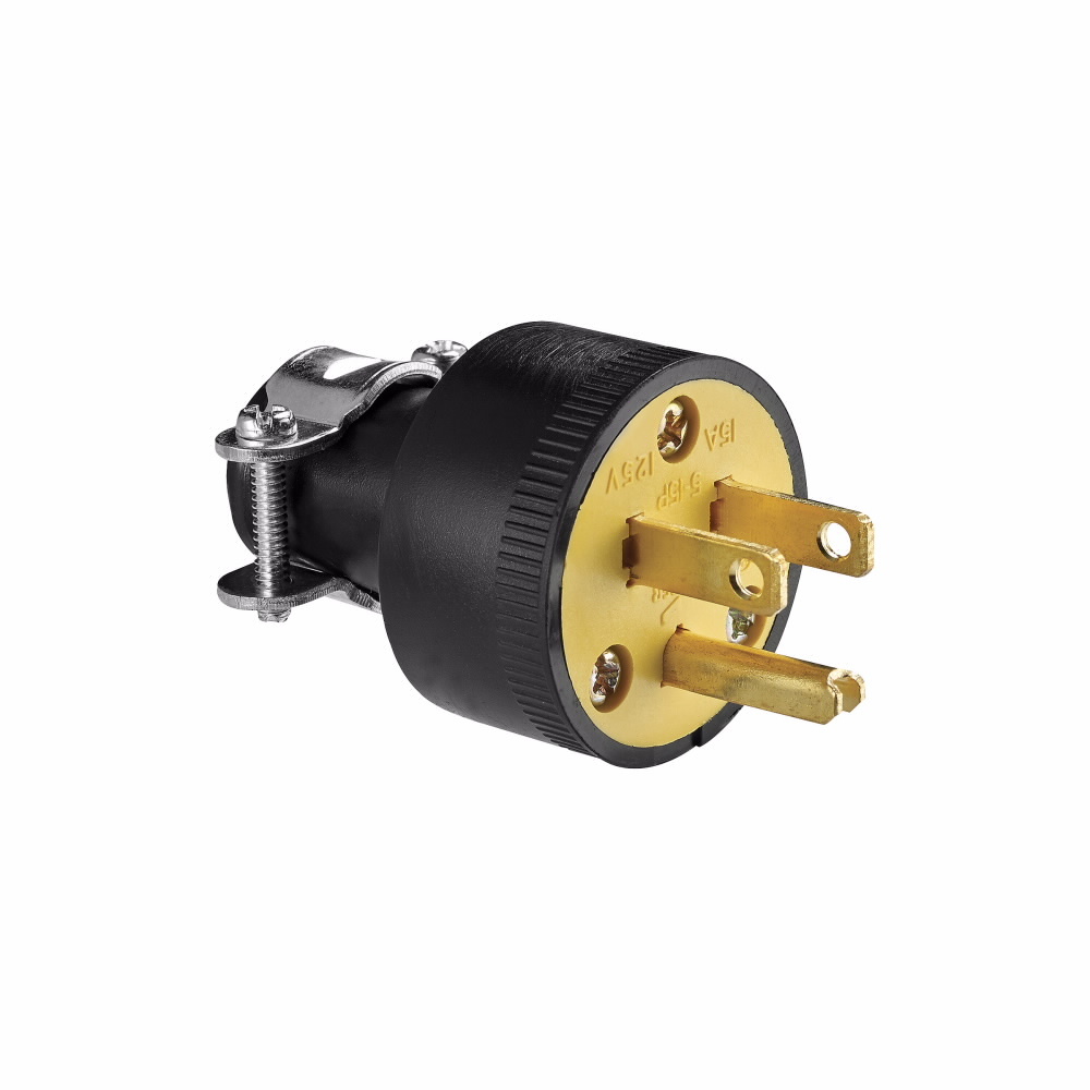 EATON Arrow Hart™ Eaton Wiring Devices 1709-BOX Grounding Heavy Duty Straight Blade Plug, 125 VAC, 15 A, 2 Poles, 3 Wires, Black