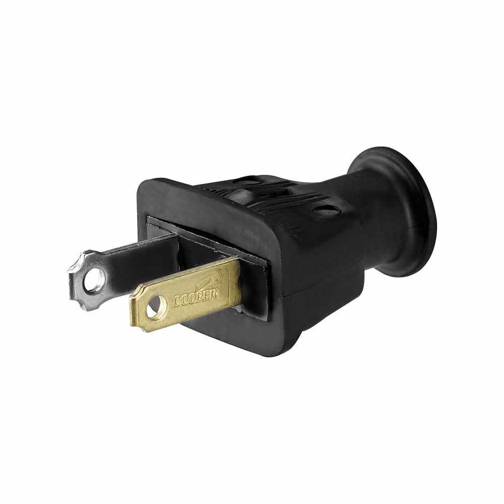 EATON Eaton Wiring Devices 183-6BK-BOX Angled Non-Grounding Polarized Straight Blade Plug, 125 VAC, 15 A, 2 Poles, 2 Wires, Black