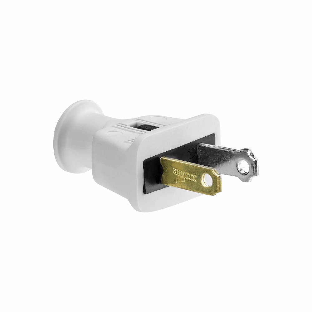 EATON Eaton Wiring Devices 183-6W-BOX Angled Non-Grounding Polarized Straight Blade Plug, 125 VAC, 15 A, 2 Poles, 2 Wires, White