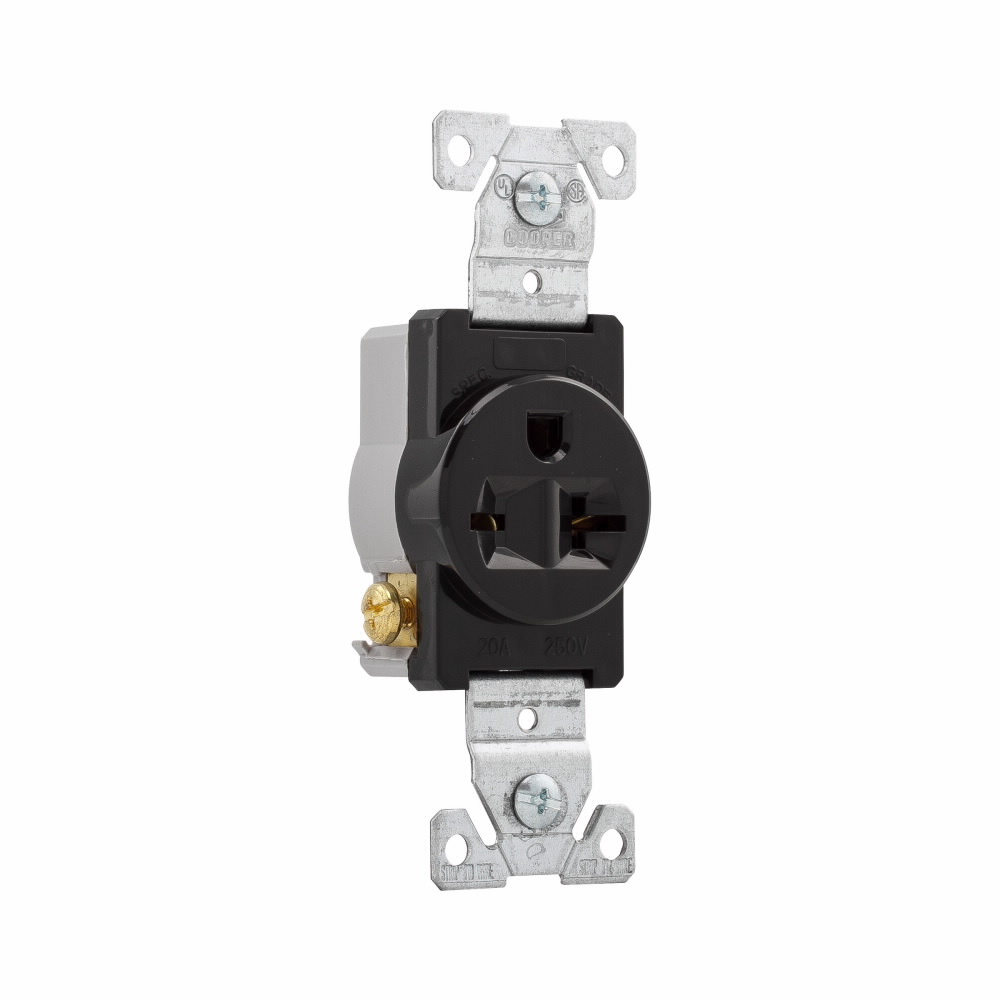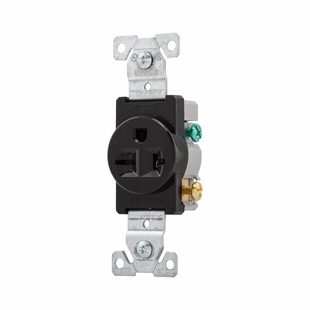 EATON 1876BK 1876 Grounding Single Straight Blade Receptacle, 250 VAC, 20 A, 2 Poles, 3 Wires, Black