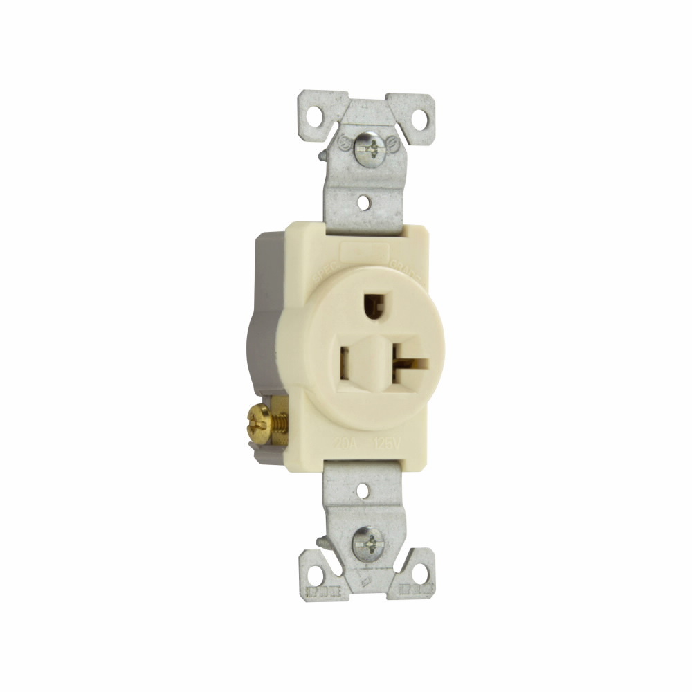 EATON Arrow Hart™ Eaton Wiring Devices 1877A 1877 Single Tamper-Resistant Straight Blade Receptacle, 125 VAC, 20 A, 2 Poles, 3 Wires, Almond