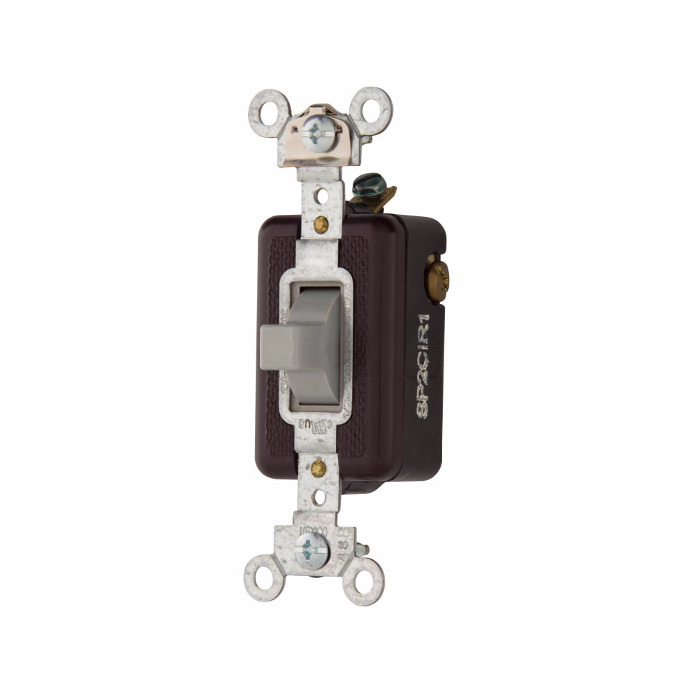 EATON Arrow Hart 1895GY 3-Position Toggle Switch, 120/277 V, 15 A, 1/2 hp, 2 hp Power Rating