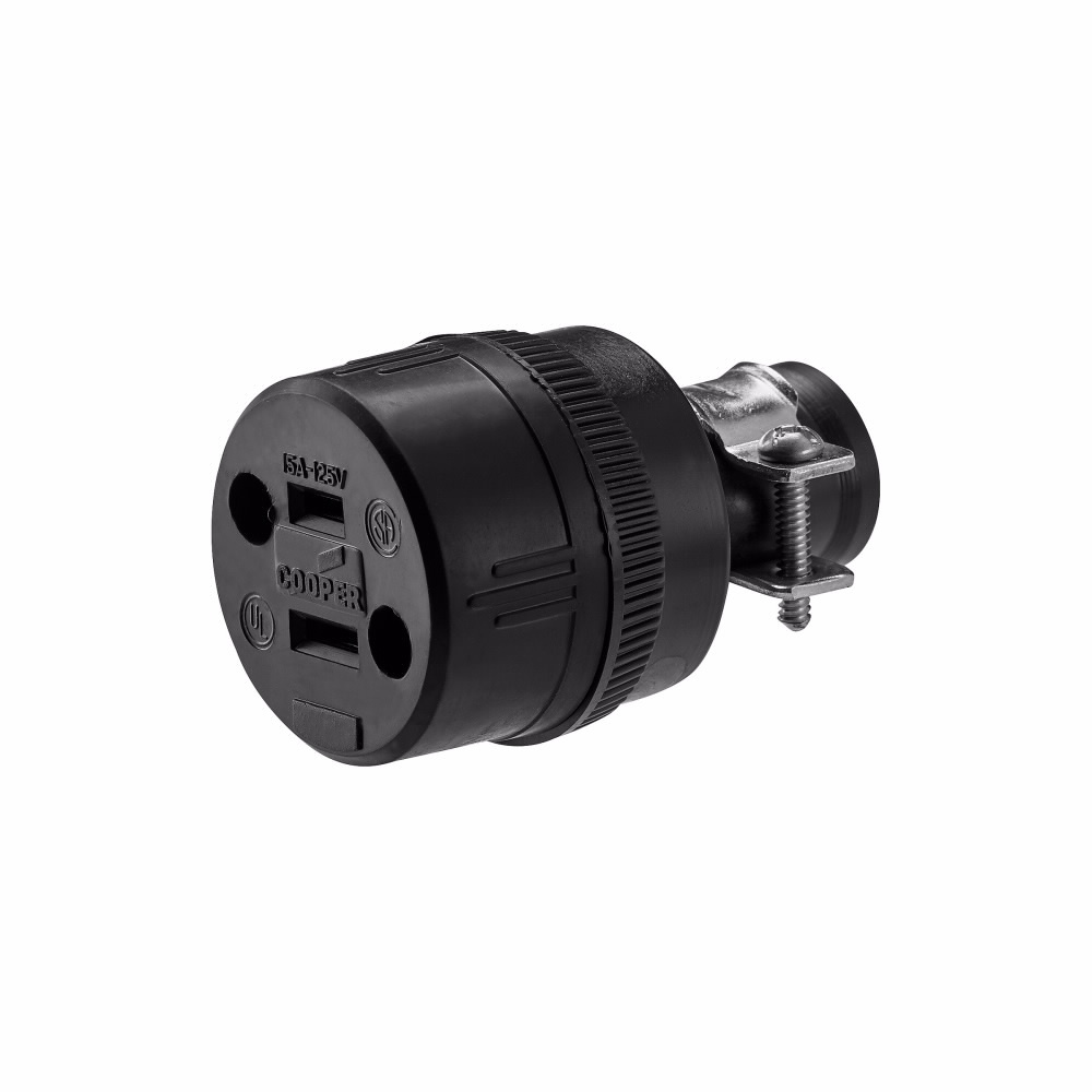 EATON Arrow Hart® 224-BOX Straight Blade Connector, 125 V, 15 A, 2 Poles, 2 Wires, Black