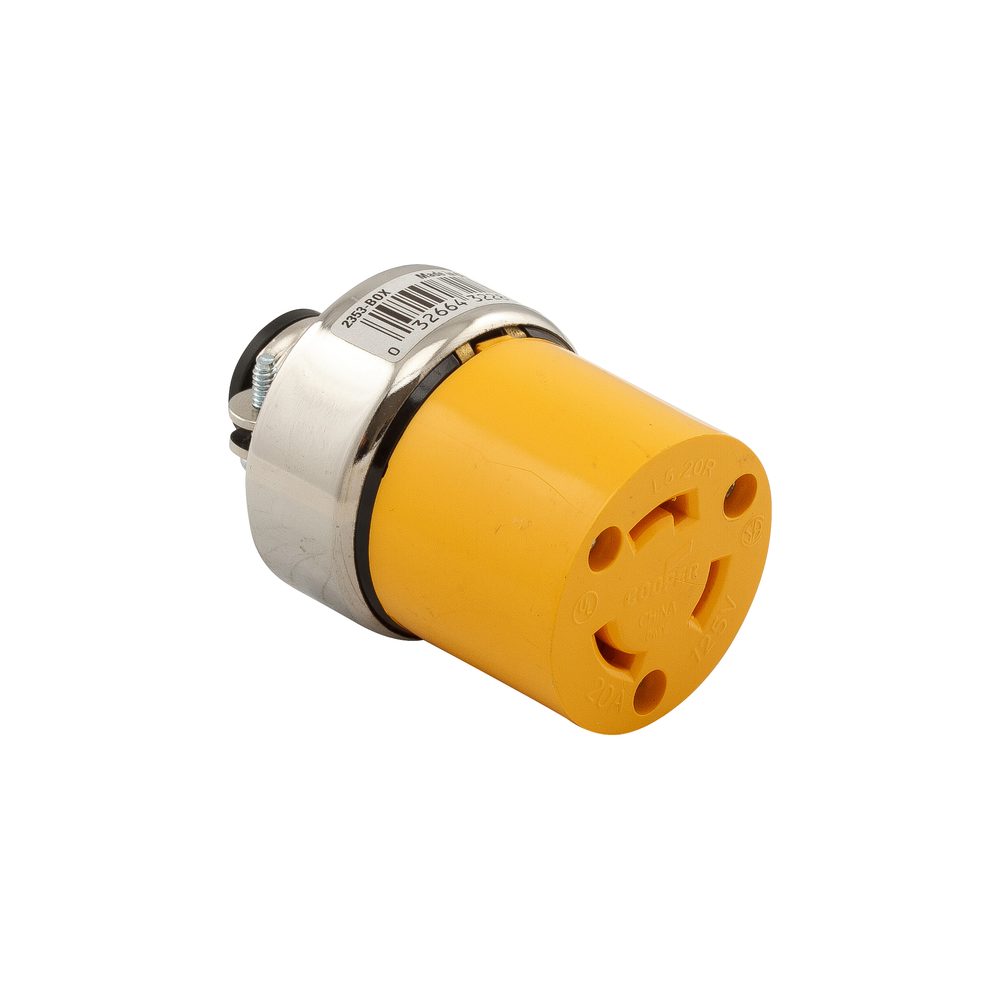 EATON 2353-BOX Locking Connector, 125 V, 20 A, 2 Poles, 3 Wires, Yellow