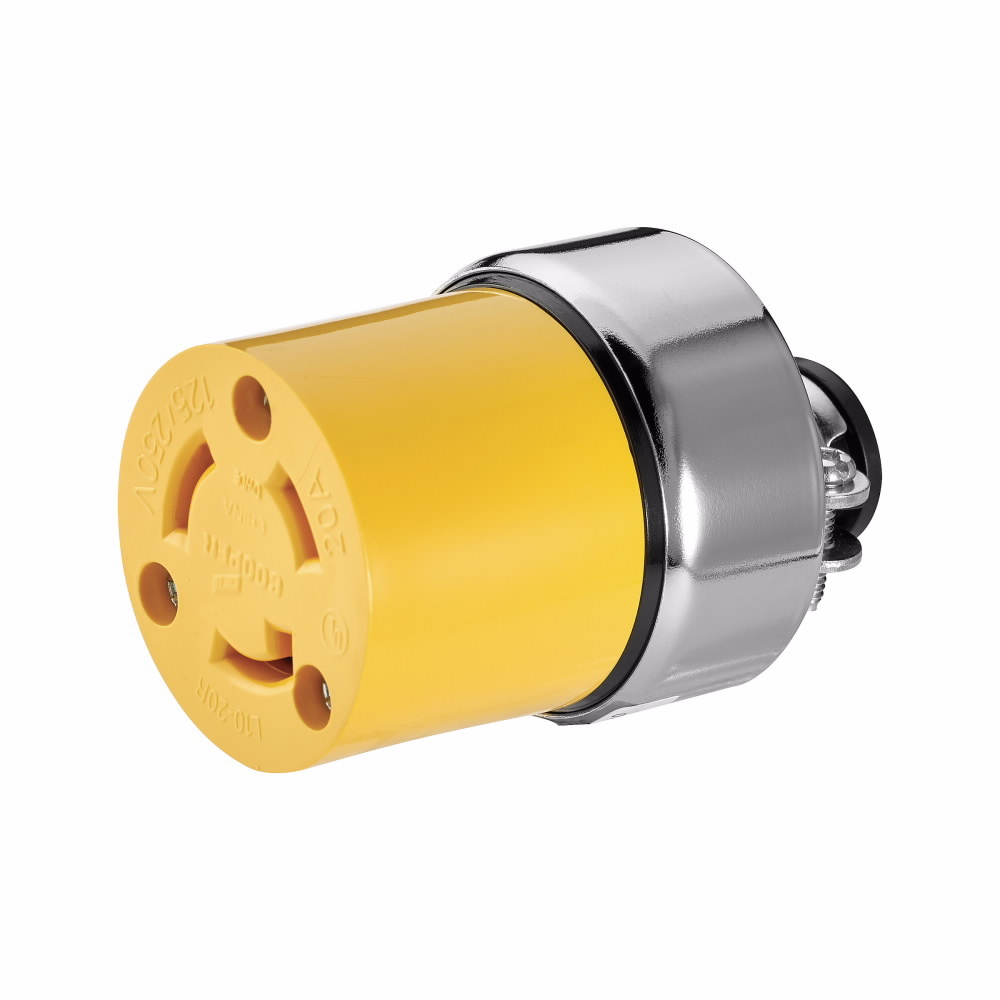 EATON 2355-BOX Locking Connector, 125/250 V, 20 A, 3 Poles, 3 Wires, Yellow