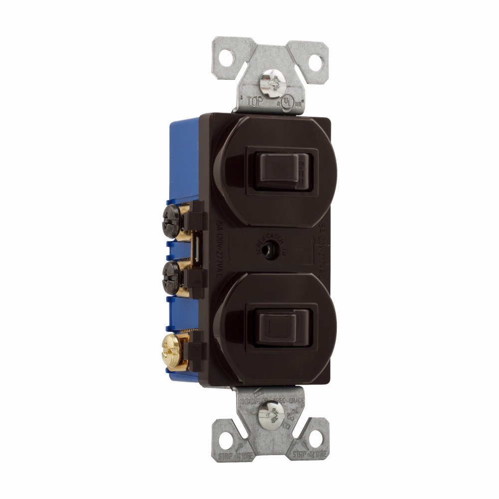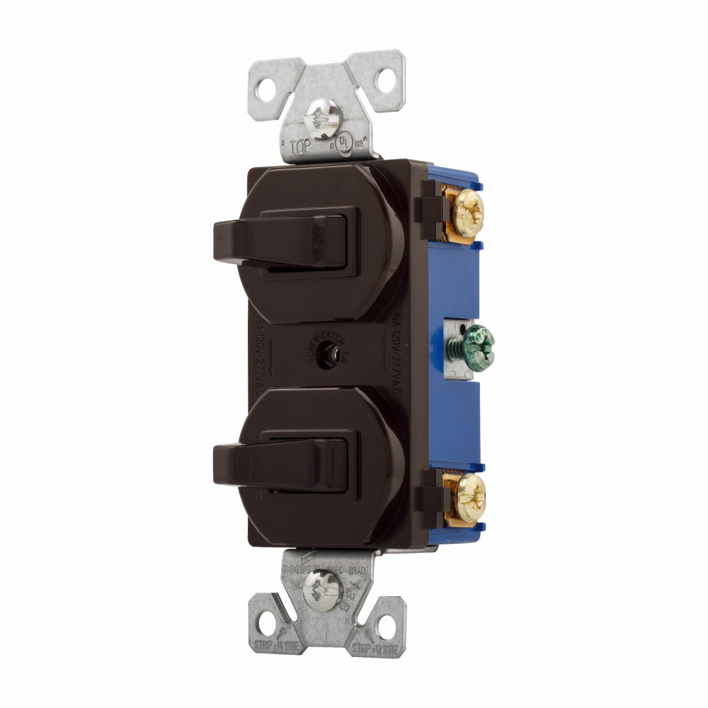 EATON Arrow Hart™ Eaton Wiring Devices 275B-BOX 3-Way Duplex Heavy Duty Toggle Combination Switch, 15 A at 120 VAC, 1 Poles