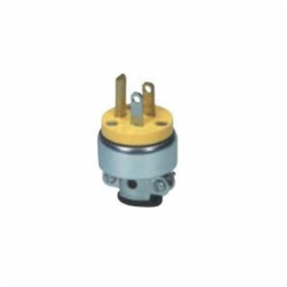 EATON 2867-BOX Grounding Straight Blade Plug, 125 VAC, 15 A, 2 Poles, 3 Wires, Yellow