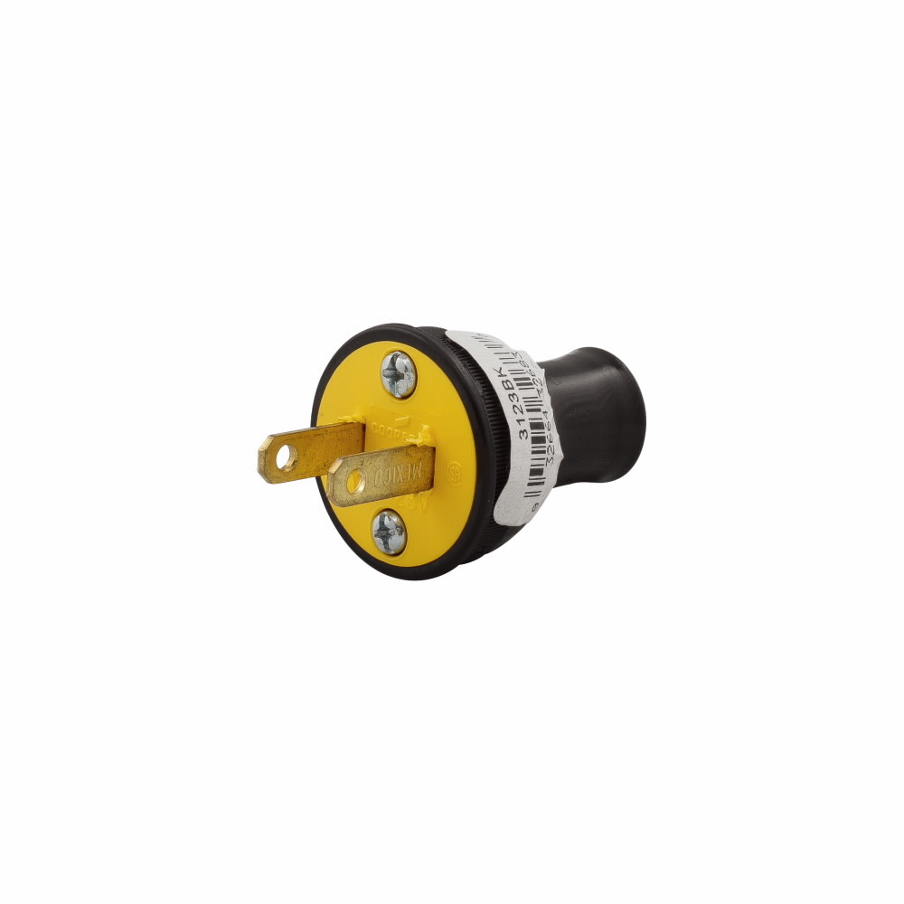EATON Arrow Hart™ Eaton Wiring Devices 3123BK-BOX Round Straight Blade Plug, 125 VAC, 15 A, 2 Poles, 2 Wires, Black