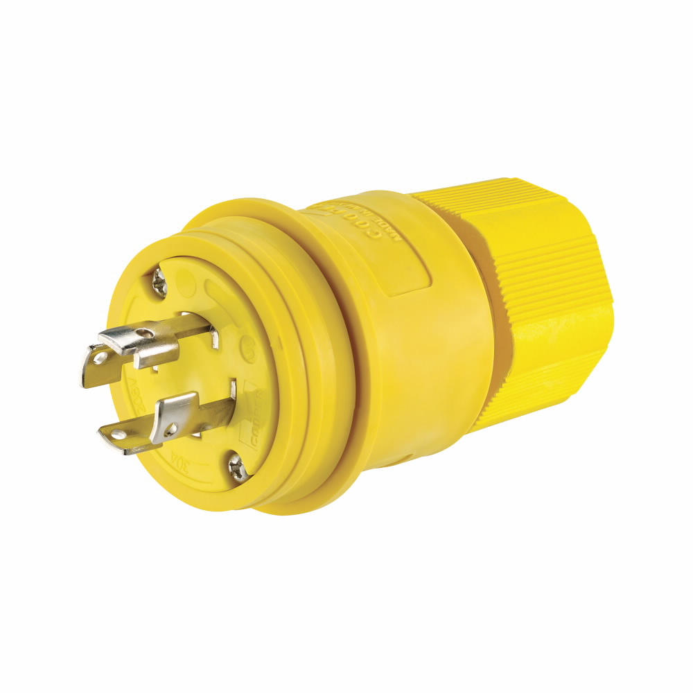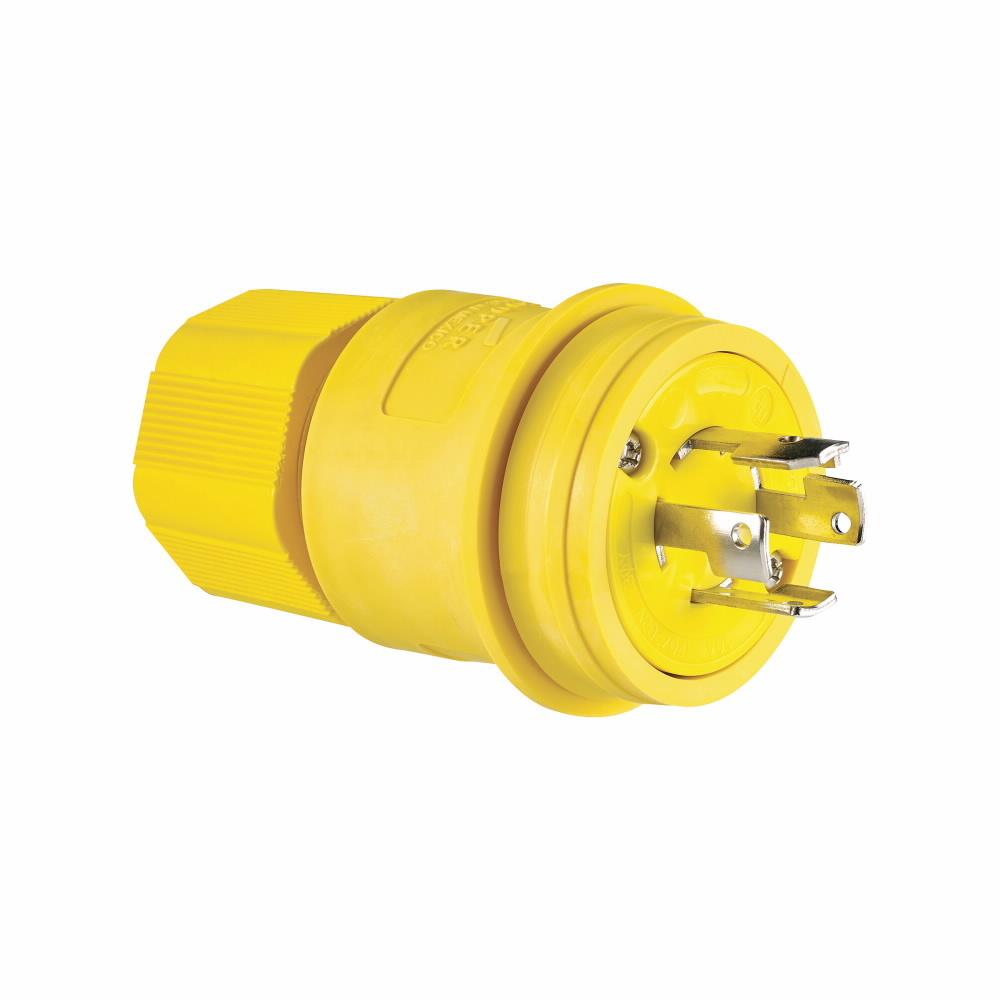 EATON Wiring Devices Arrow Hart 3431PW 3-Phase Non-Grounding Watertight Locking Device Plug, 120/208 VAC, 30 A, 4 Poles, 4 Wires, Yellow