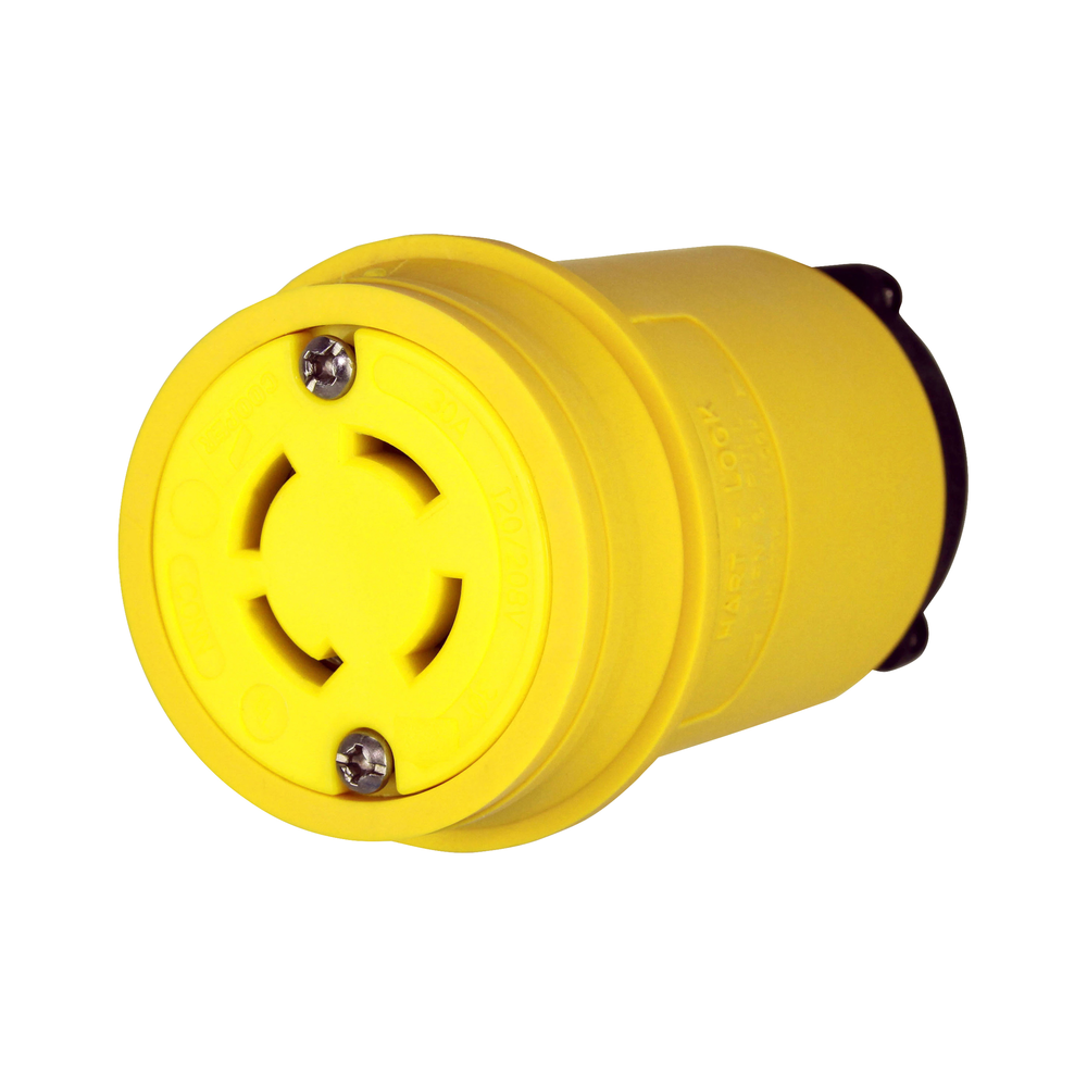 EATON Hart-Lock® Safety Grip™ 3433CY Complex Environment Locking Connector, 120/208 V, 30 A, 4 Poles, 4 Wires, Yellow