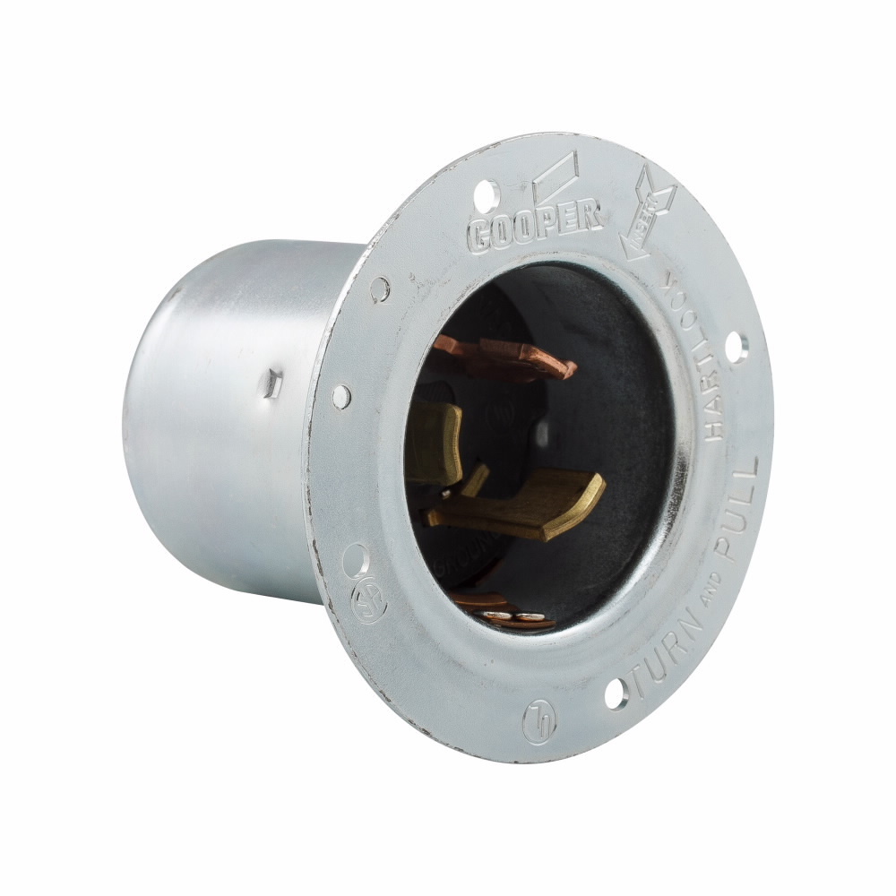 EATON Arrow Hart® Hart-Lock® 3777 Locking Flanged Inlet, 600 V, 50 A, 2 Poles, 3 Wires, Steel
