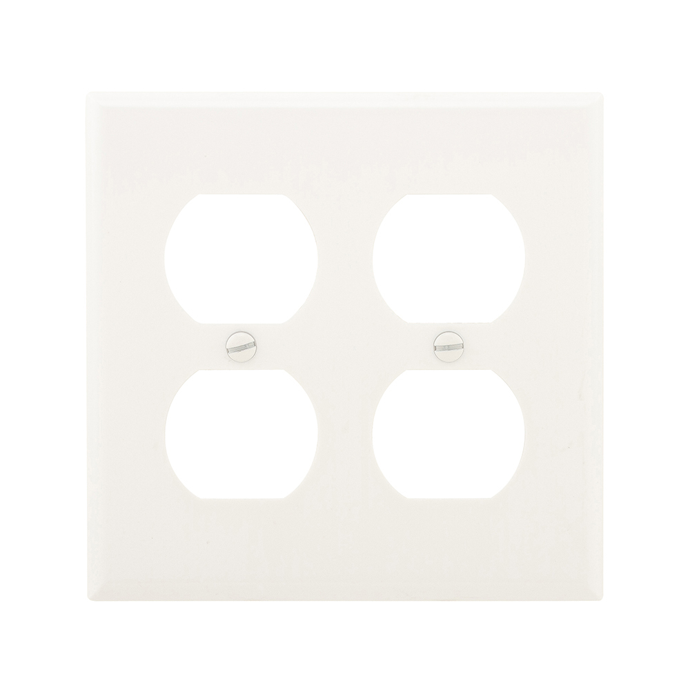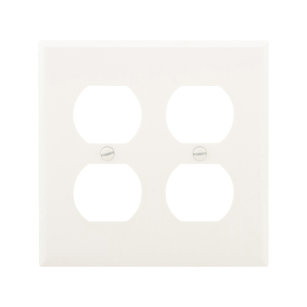 EATON 4150W-BOX Standard Receptacle Wallplate, 2 Gangs, 4.55 in L x 4.49 in W x 0.39 in H, Thermoset, White
